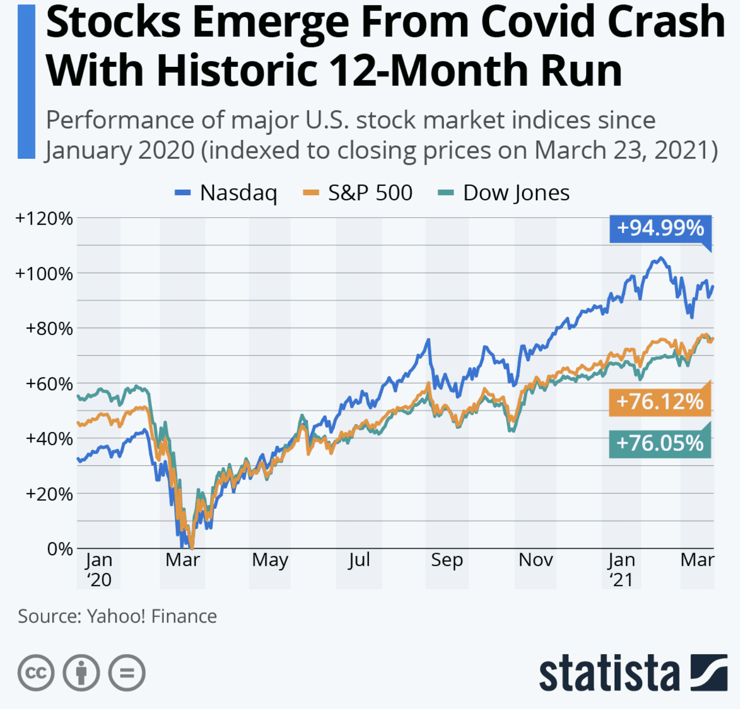 However, like any other attempt at a recovery, even the stock market had bounced back by March 2021, registering new highs.