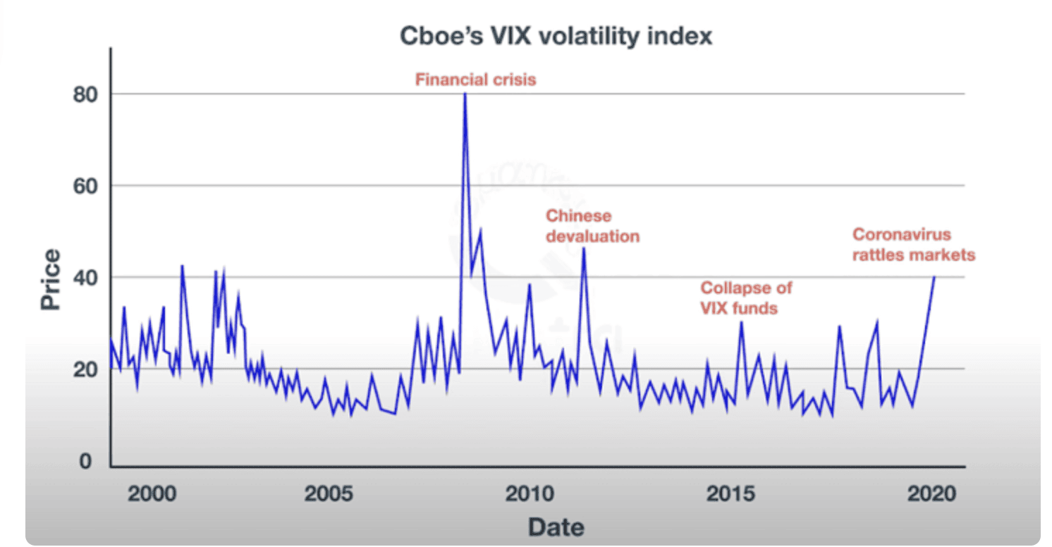Another instance is when the CBOE volatility index or VIX surged to 82.69 in 2008.