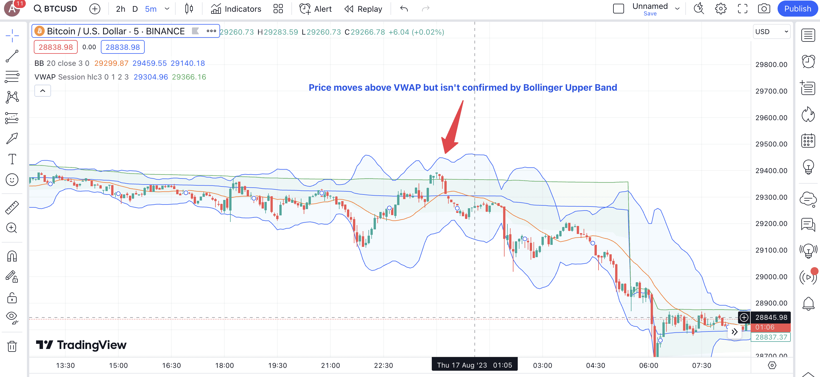 Apart from RSI and MACD, Bollinger Bands can be used with the likes of the Stochastic Oscillator, Volume-Weighted Average Price (VWAP), Parabolic SAR, and more. However, your indicator choice should depend on how familiar you are with the market and the technical analysis tools.
