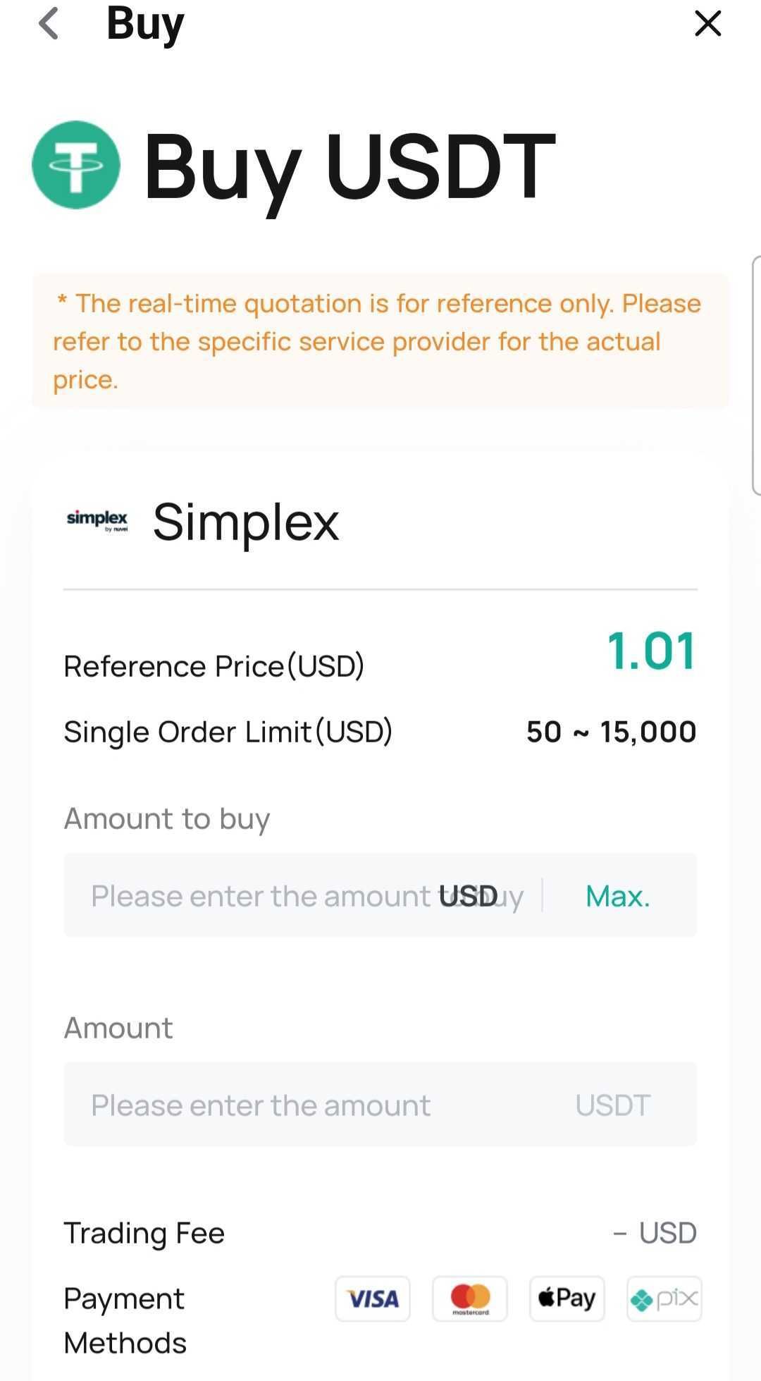 2. Fund your account: If your balance is zero, you’ll need to buy a cryptocurrency that can be exchanged for APT, such as USDT.