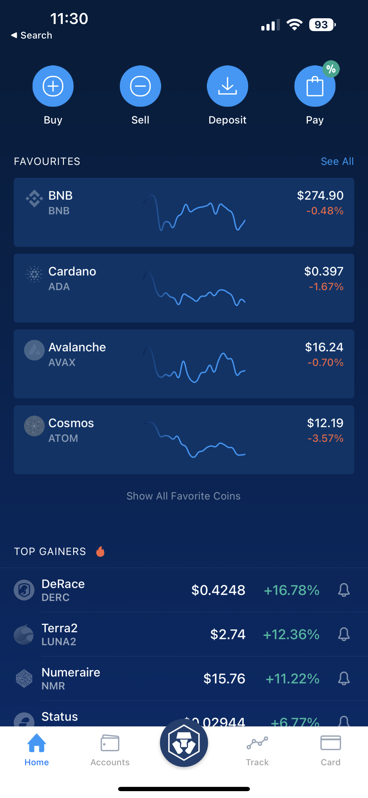 | Beginner friendly and convenient interface | Daily crypto purchase limits via Apple Pay: These depend on your Crypto.com Visa Card tier. For those without a card or with the lowest tier Midnight Blue, purchases are limited to $750 weekly. Ruby Steel card holders can purchase up to $2,000 worth of crypto per week using Apple Pay. |