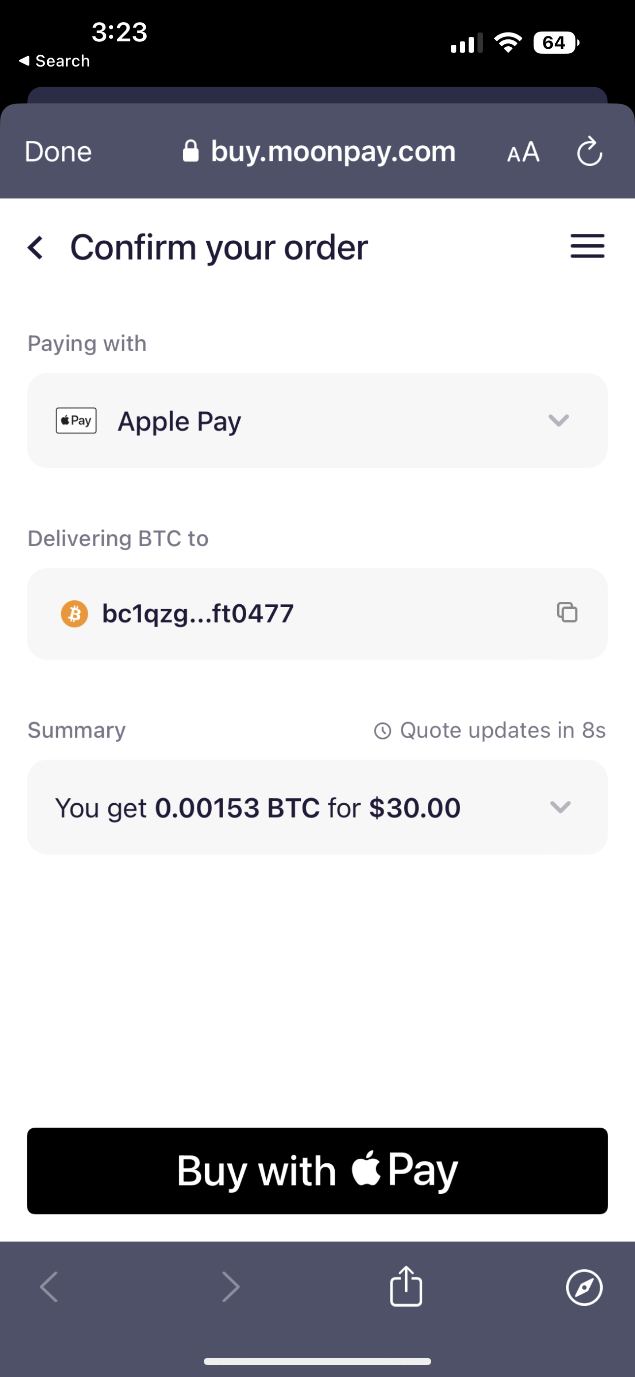 ➤ It is now easier than ever to buy crypto. Users can purchase Bitcoin and other digital assets with just a few simple clicks using Apple Pay.