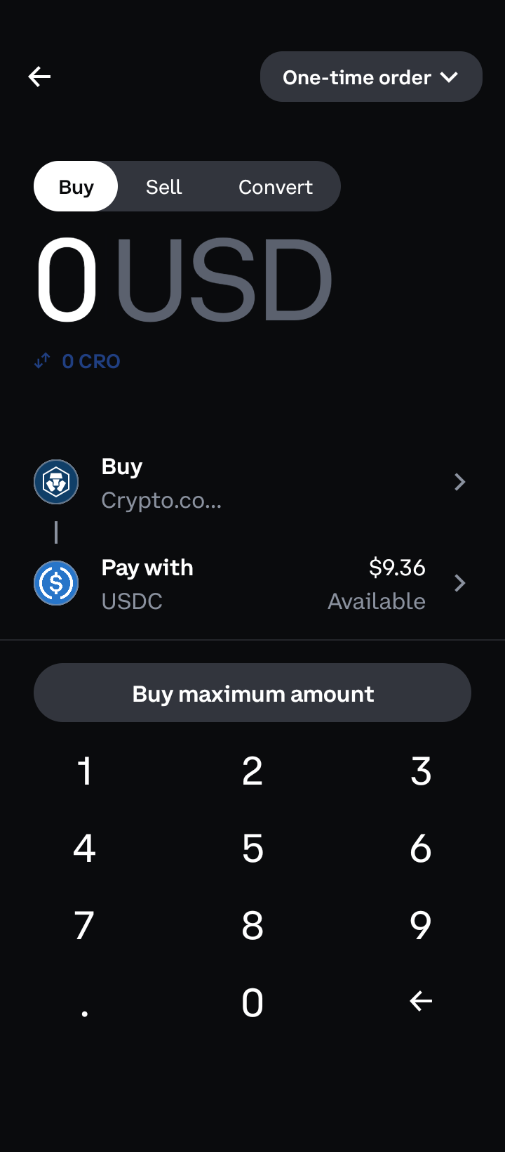 3. Select the “Buy” button: Once you have selected CRO, select the buy “Buy” button to continue to the next step.