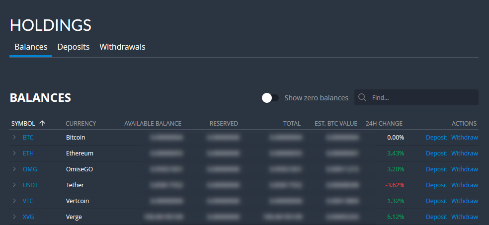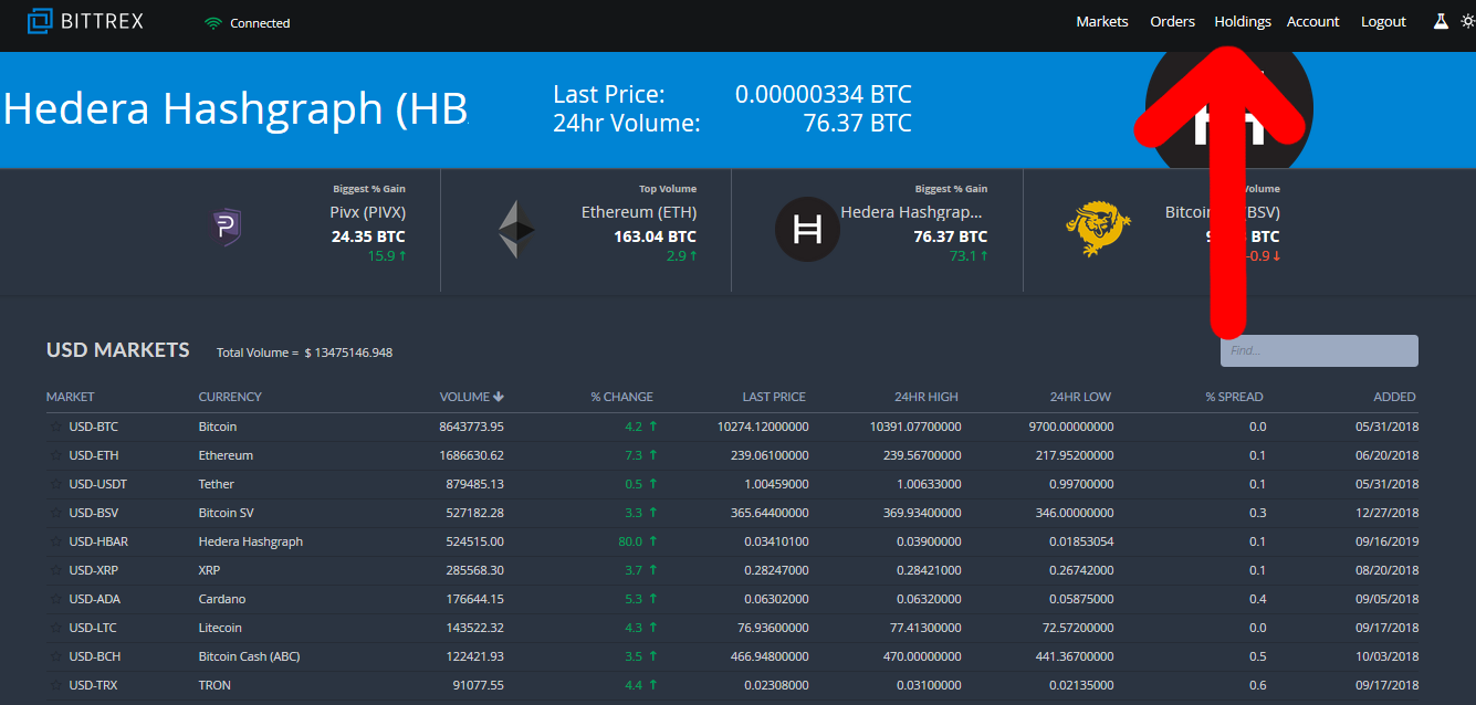 Okay, you’re all set up on Bittrex and you want to buy some Dash! The next thing you need to do is fund your Bitcoin wallet, as previously mentioned. From your home market screen, click on the “Holdings” tab in the top right corner of the screen.