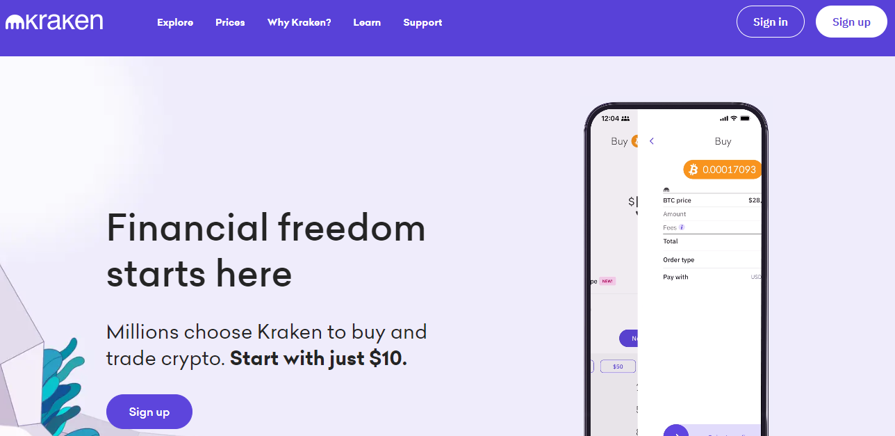 1. Navigate to the website: Once you select an exchange, you must sign up for an account. Go to the Kraken website (or your preferred exchange) and click Sign up.