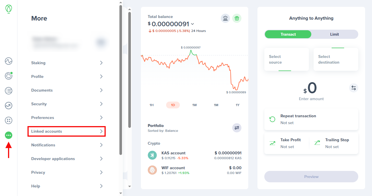 2. Select the menu: Press the button with a circle and three dots. This will open up a menu on the left side of the screen. Scroll down and select Linked accounts.