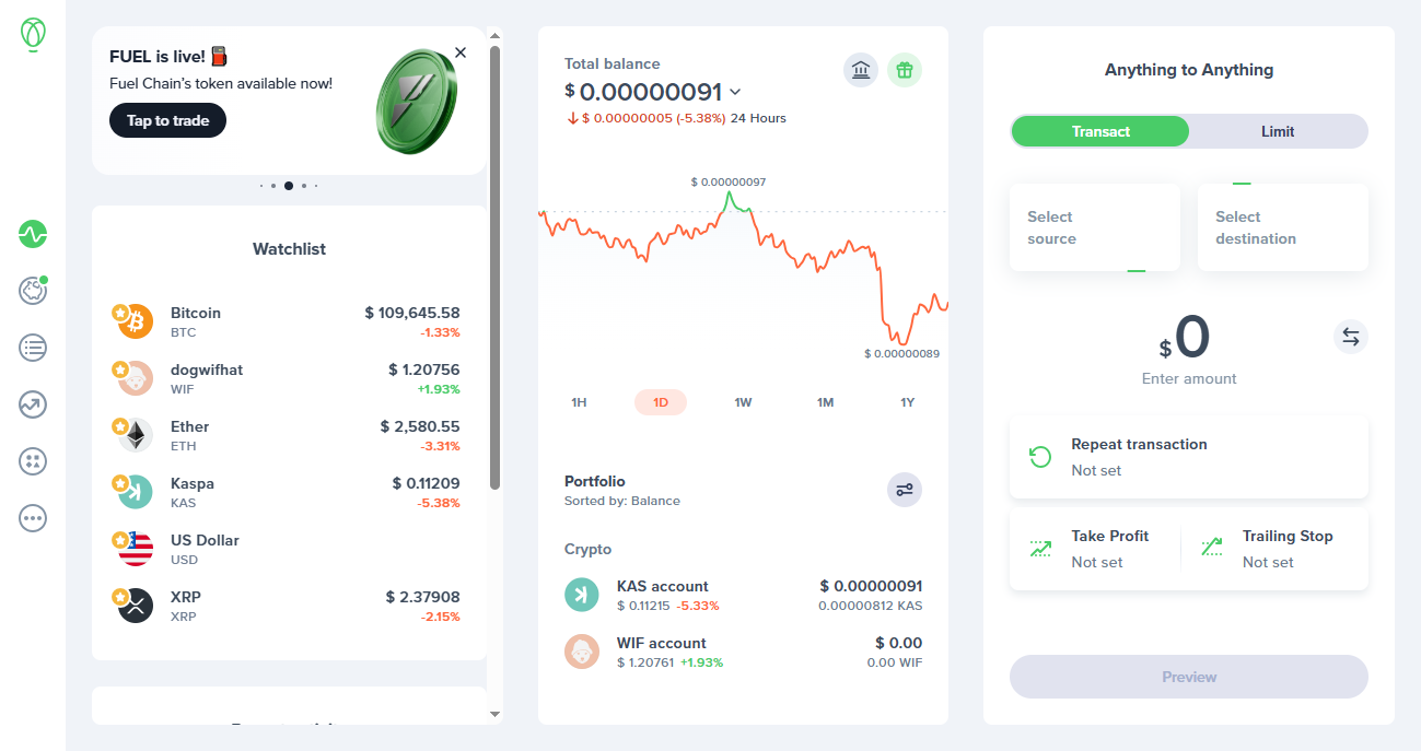 1. Log in to your account: Sign in to your newly created Uphold account. You will notice three sections: a watchlist, your portfolio, and a trading section. Take a minute to look around and get familiar with the platform before purchasing XRP with a credit or debit card.