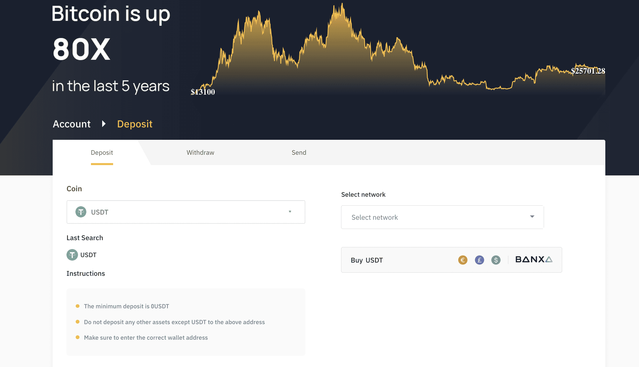 SponsoredOnce verified, you can make fiat currency deposits using a wide range of payment options, including bank transfers, Apple Pay, and more — depending on which country you are operating from.