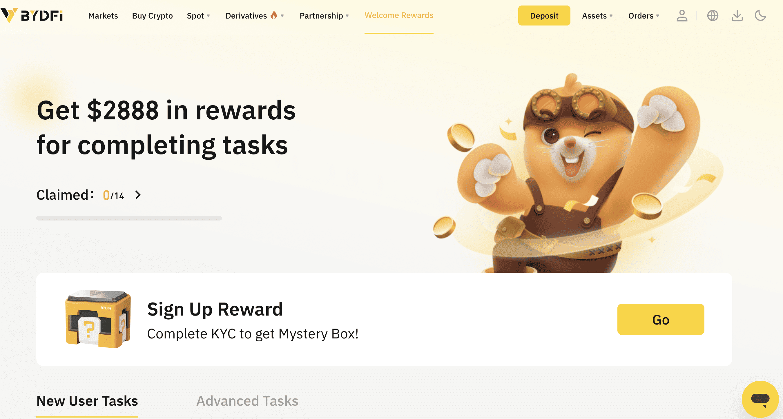 Once inside BYDFi, you can start crypto trading immediately by migrating or depositing your crypto on-chain. There is no requirement to complete KYC verification at this stage; you must only pay the network-specific transaction fees.
