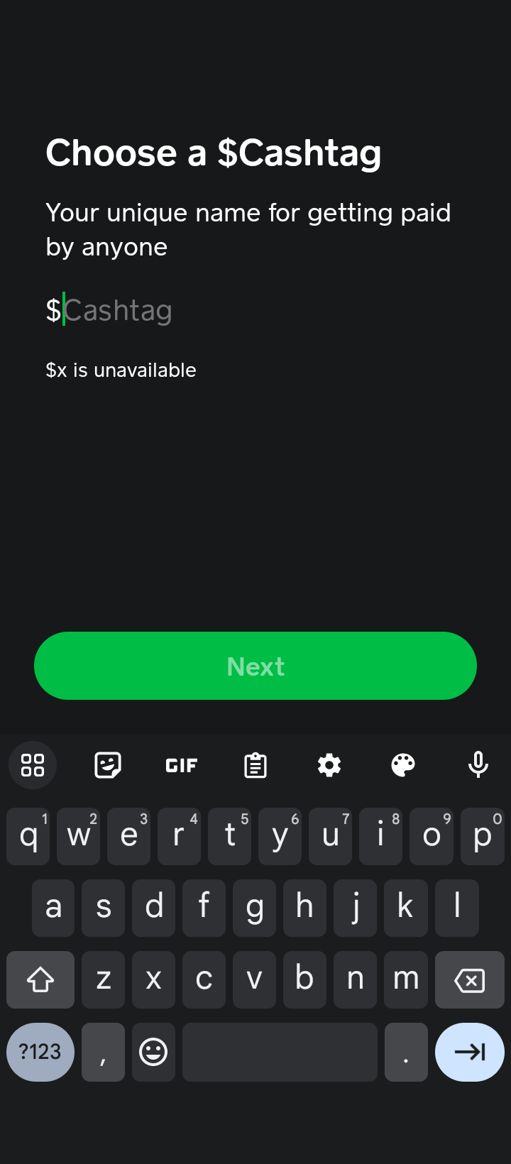 6. Lastly, choose a “$Cashtag.” This is a unique identifier that your friends and family will use to send you money.