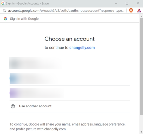 3. Select an email of your choice, and voila! You should be redirected to the Changelly landing page and signed in to your new Changelly account.