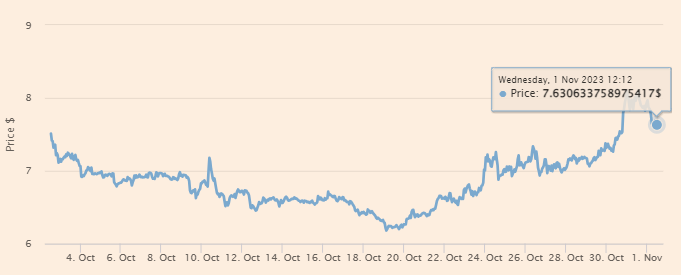 ATOM is the native cryptocurrency of Cosmos and serves as the gateway to the Cosmos ecosystem. Boasting a market capitalization of $2.2 billion as of Nov. 1, 2023, cosmos is trading at $7.626 per unit, with 292 million ATOM in circulation. Our cosmos price prediction traces the potential future price of the coin, positing a minimum ATOM price of $22.10 in 2025 and a maximum of $46.20.