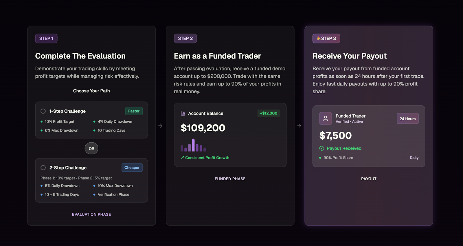 However, for the prop firm to provide you with that capital, you need to earn their trust by passing their evaluation.