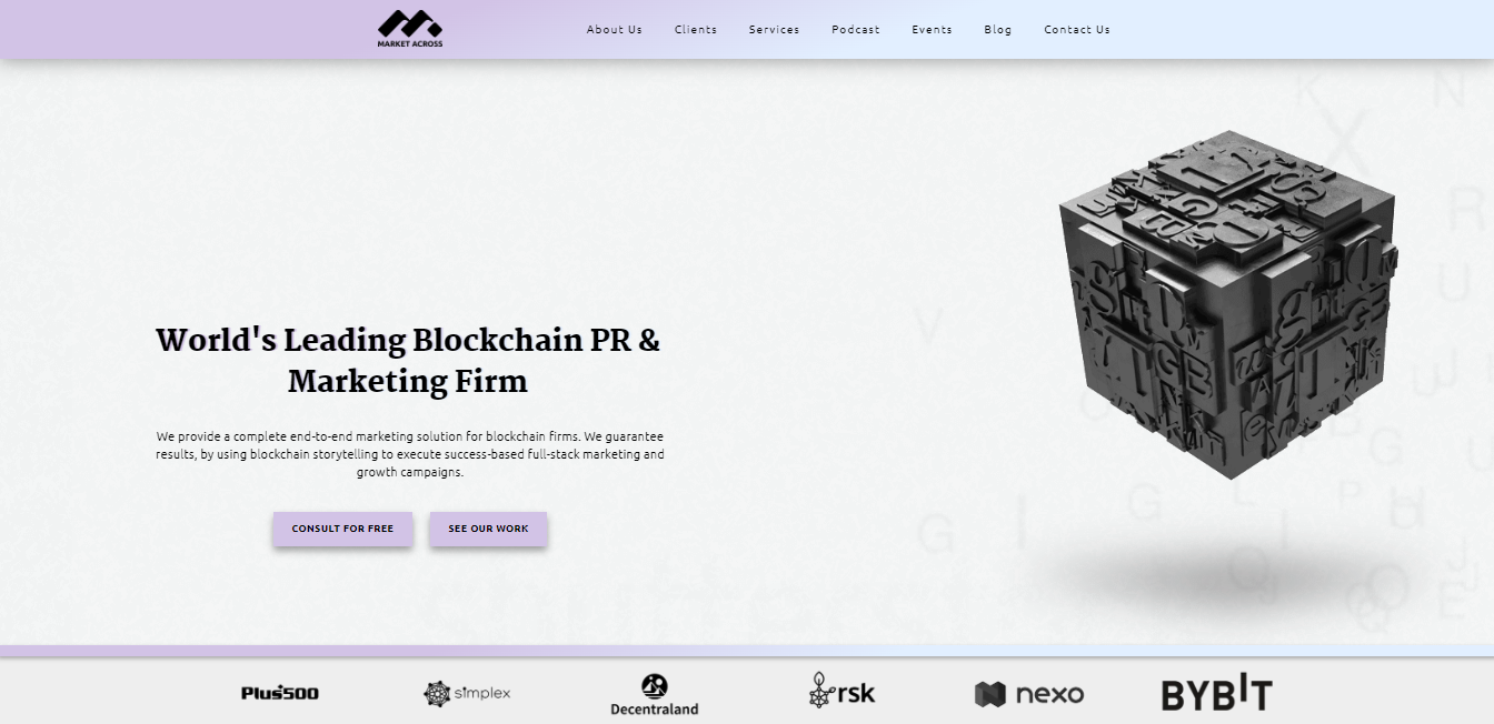 Since 2014, Market Across has helped cryptocurrency and web3 startups in premium content marketing solutions and public relations (PR). They have worked with a number of prominent firms and blockchains within the space, including Simplex, KuCoin, eToro, and Polygon, to name a few.