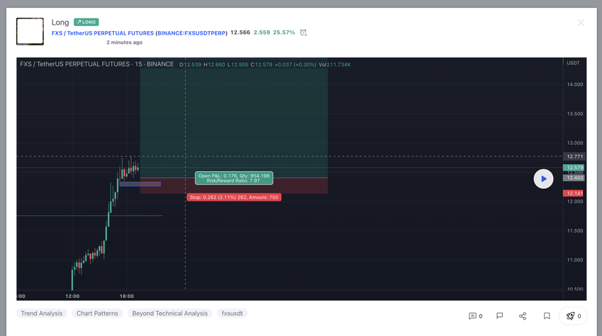 - Choose the signal and click on it. In the post, you can see a built-in TradingView chart with the user’s comments. You can see hashtags that can be similar posts, exchanges, tokens, and strategies. Remember to check the post’s time and ensure you’re not following old crypto signals.