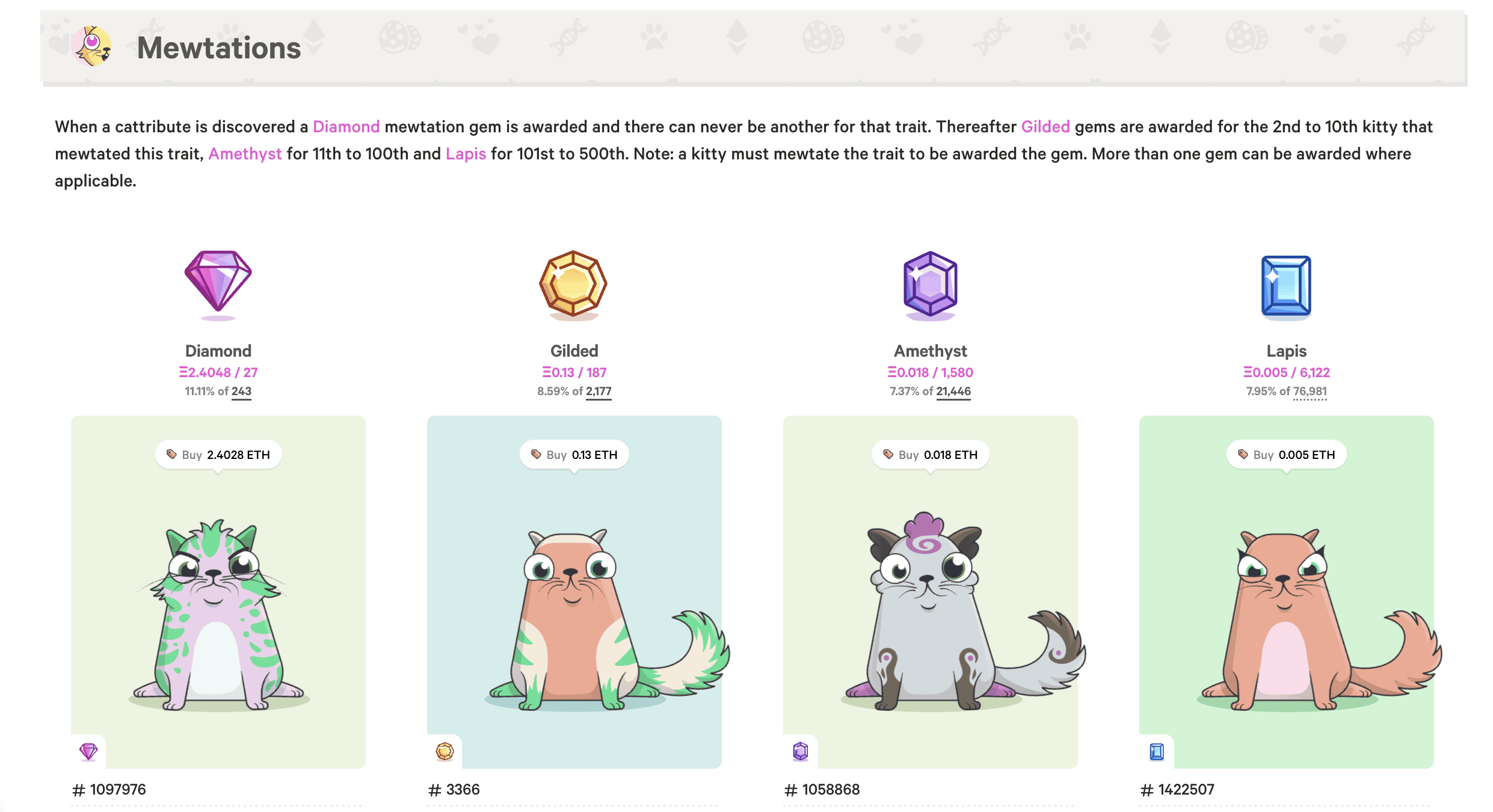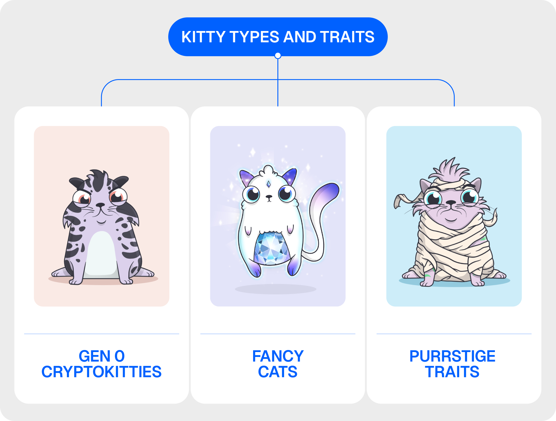 Fancy Cats: These have unique designs and are created by achieving specific genetic combinations. Despite their visual uniqueness, they may not have rare underlying Cattributes.