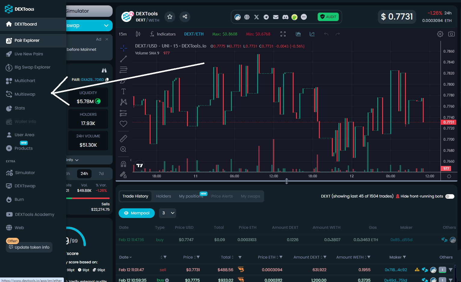 - DEXTools features