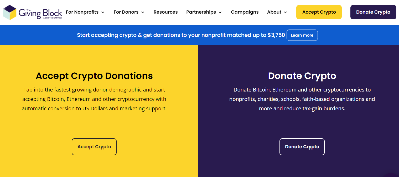 If you want to donate crypto and support some of the causes you believe in, then you can safely use The Giving Block, the most popular platform that aims to connect nonprofit organizations to their crypto donors.