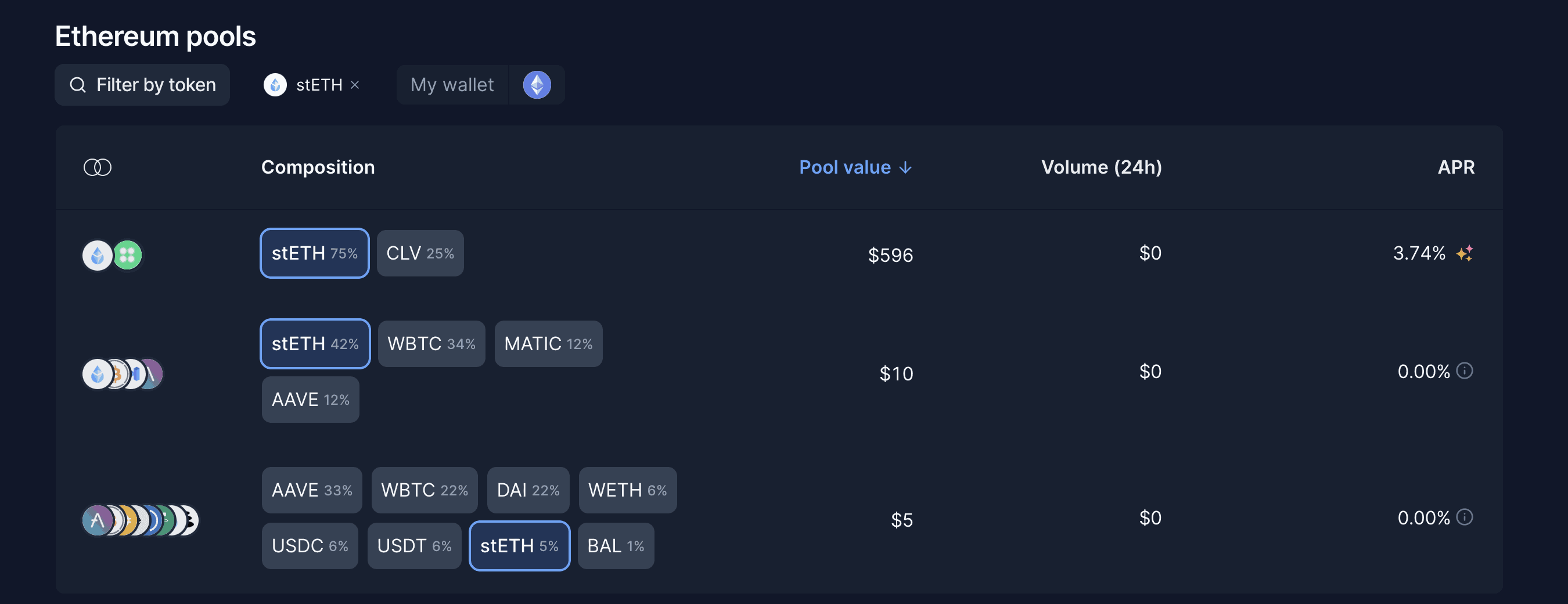 Highlight: Low-slippage swaps between stETH and ETH.
