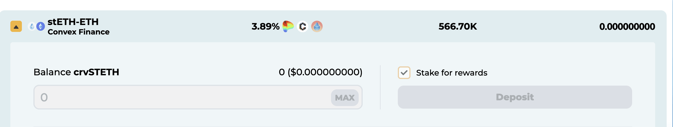 This way, you are allowing Concentrator to auto-claim every reward token, gather them all, and eventually sell them for cvxCRV tokens. Do note that these cvxCRV tokens have a very high vAPR threshold on Convex, allowing you to maximize your yield on stETH.