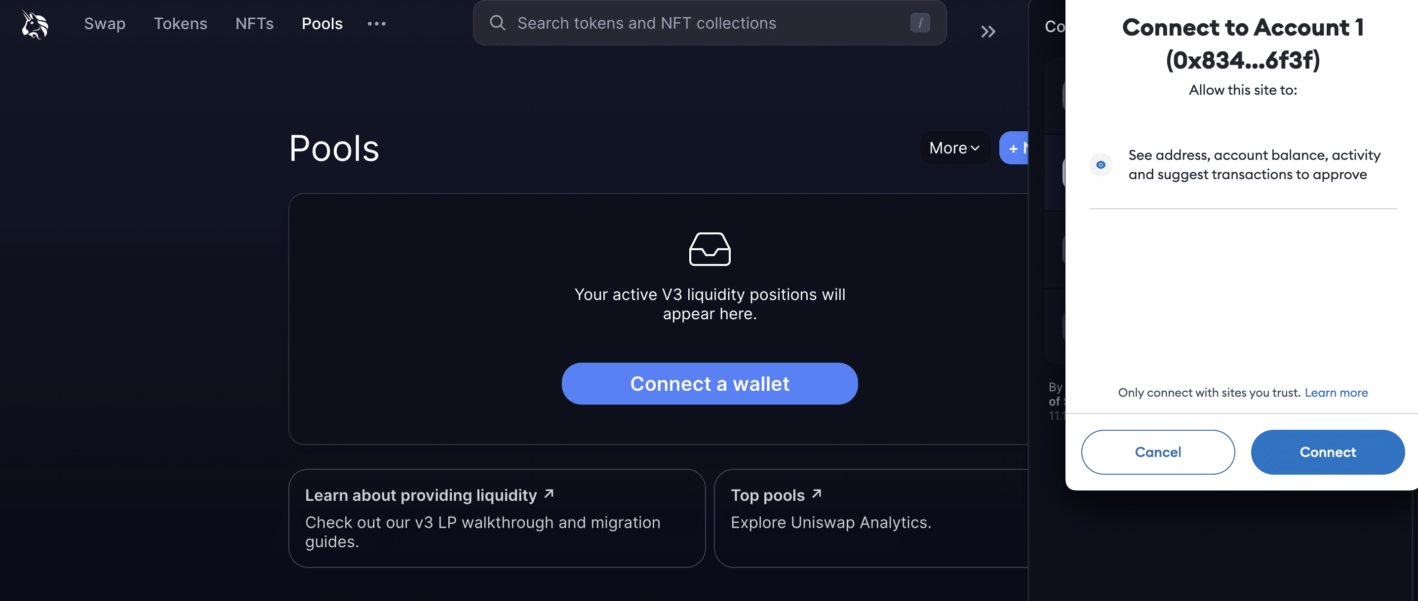 You simply need to connect your wallet (MetaMask here) by visiting the service page of the concerned platform. Once there, you should locate a section called “Pool,” where you will need to look for the “Add Liquidity” section. Your connected wallet will show the assets that you deposit into the concerned liquidity pool.