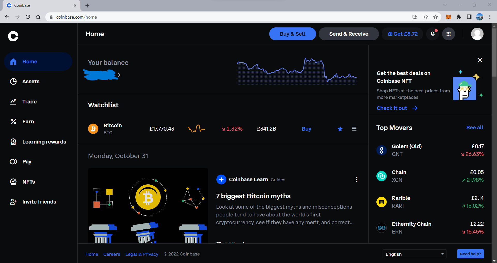 - Log into your Coinbase account. You will be automatically directed to the “Home” tab.