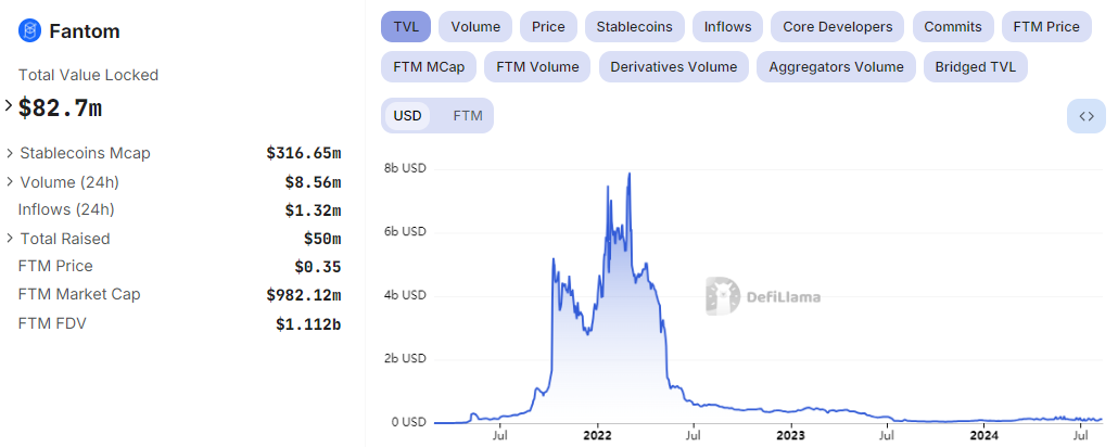 In fact, in early 2023 there was an explosion of new wallets created on the Fantom network. As of Aug. 12, 2024, the TVL for Fantom is $82.7 million, but it previously reached an all-time high of $8.33 billion in 2022. The low-fee EVM-compatible blockchain is also known for its smart contract capabilities.