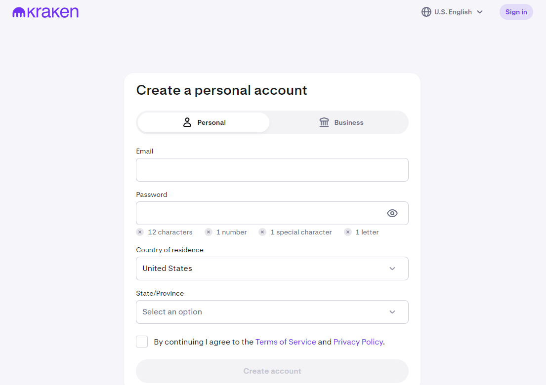 Visit the Kraken website and sign up by entering your email and creating a password. Complete the account setup by verifying your email.