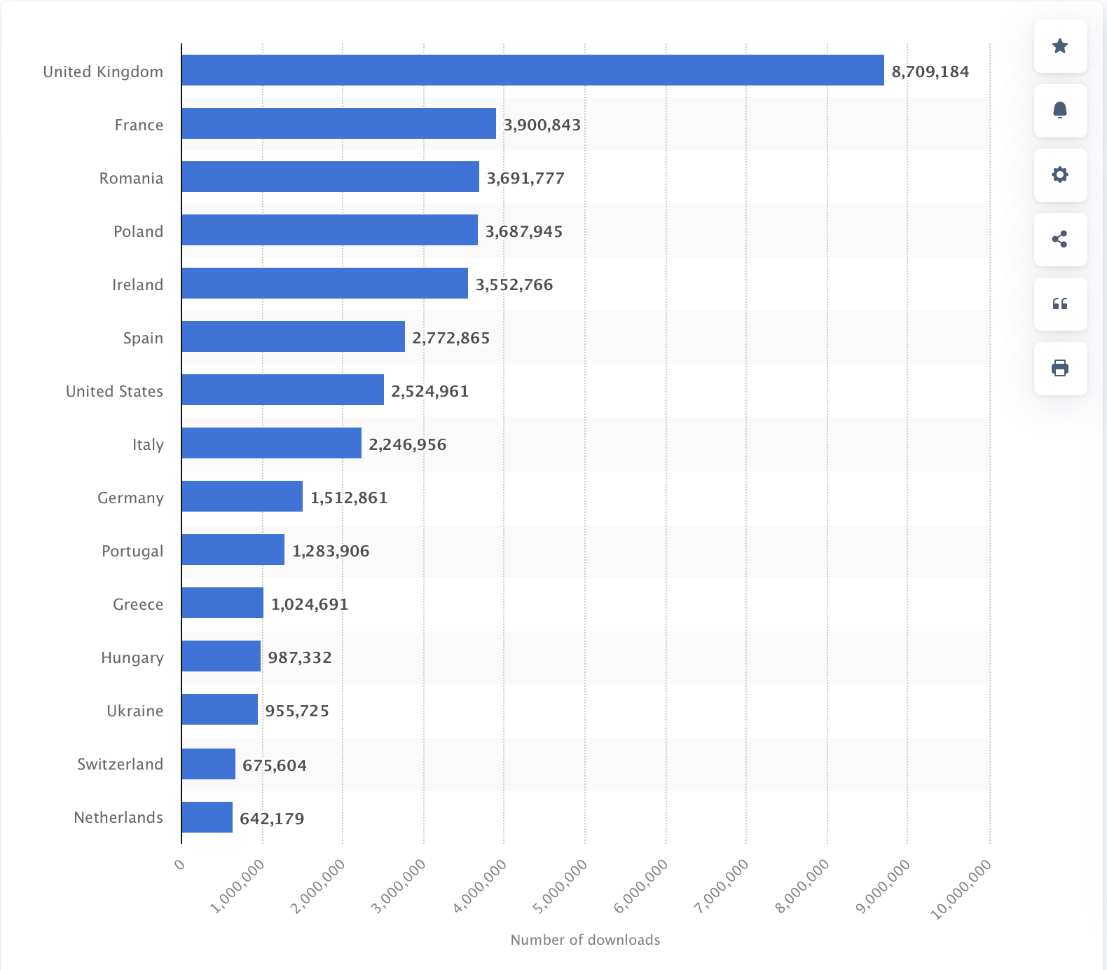 Below is a chart revealing the number of Revolut bank app downloads worldwide as of February 2023 by country.