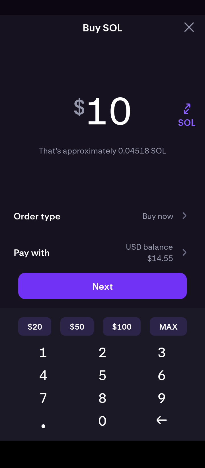 Step 2: Purchase Solana (SOL)