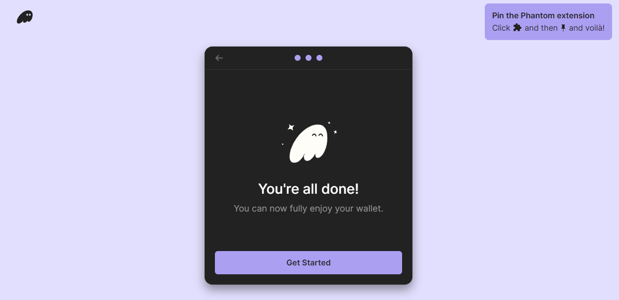 After you record your recovery phase, you have successfully created a new Phantom wallet. You can now move on to the next step.