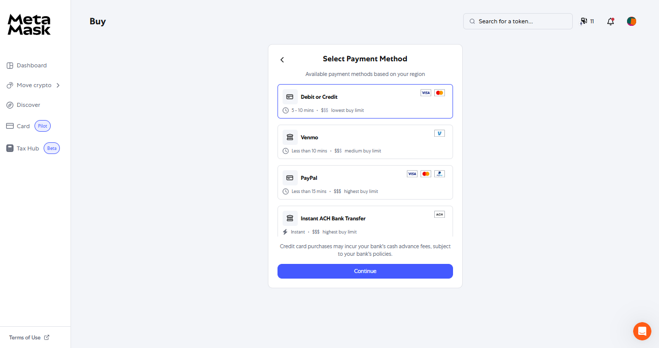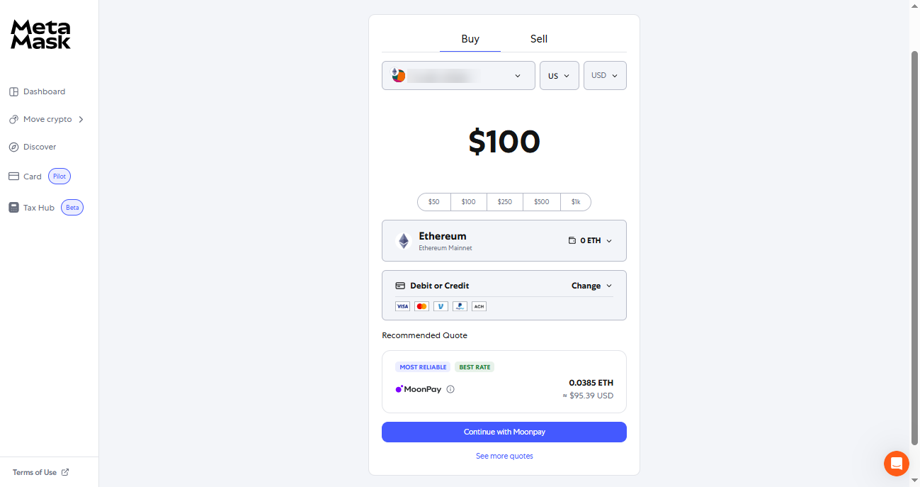 ➤ MetaMask offers a simple and secure way to buy Ethereum (ETH) using various payment methods directly within the wallet.