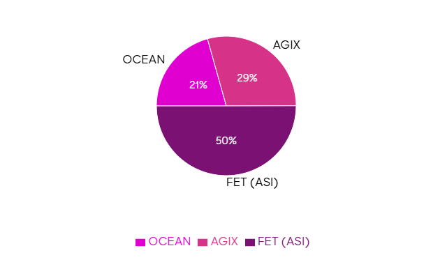The alliance’s base token, FET, will turn into ASI. An extra 1.48 billion tokens will be created, of which 867 million will be distributed to holders of AGIX and 611 million to holders of OCEAN tokens. 2.63 billion ASI tokens will be available in total.