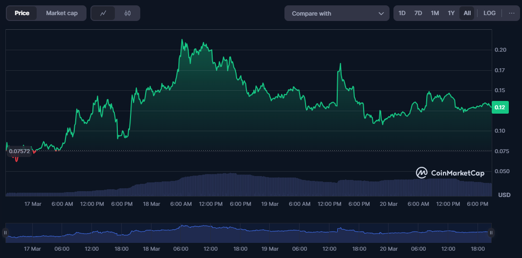 ➤ The MUBARAK price spiked sharply after launch, making it one of the hottest cryptocurrencies as of mid-March 2025.