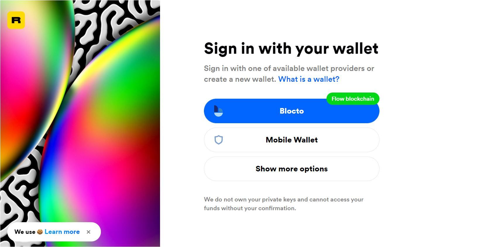 You will have to sign in with your wallet. Rarible supports many crypto wallets, including Mobile Wallet (Wallet Connect), Portis, Coinbase Wallet, Fortmatic, and MyEtherWallet.
