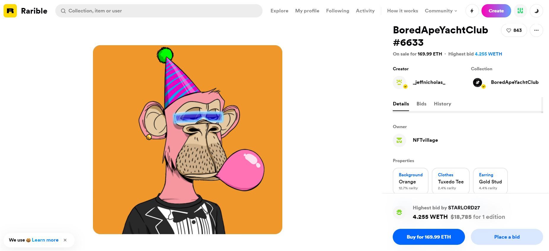 After picking an NFT, go to its page to see all the details, such as special attributes and its entire history.