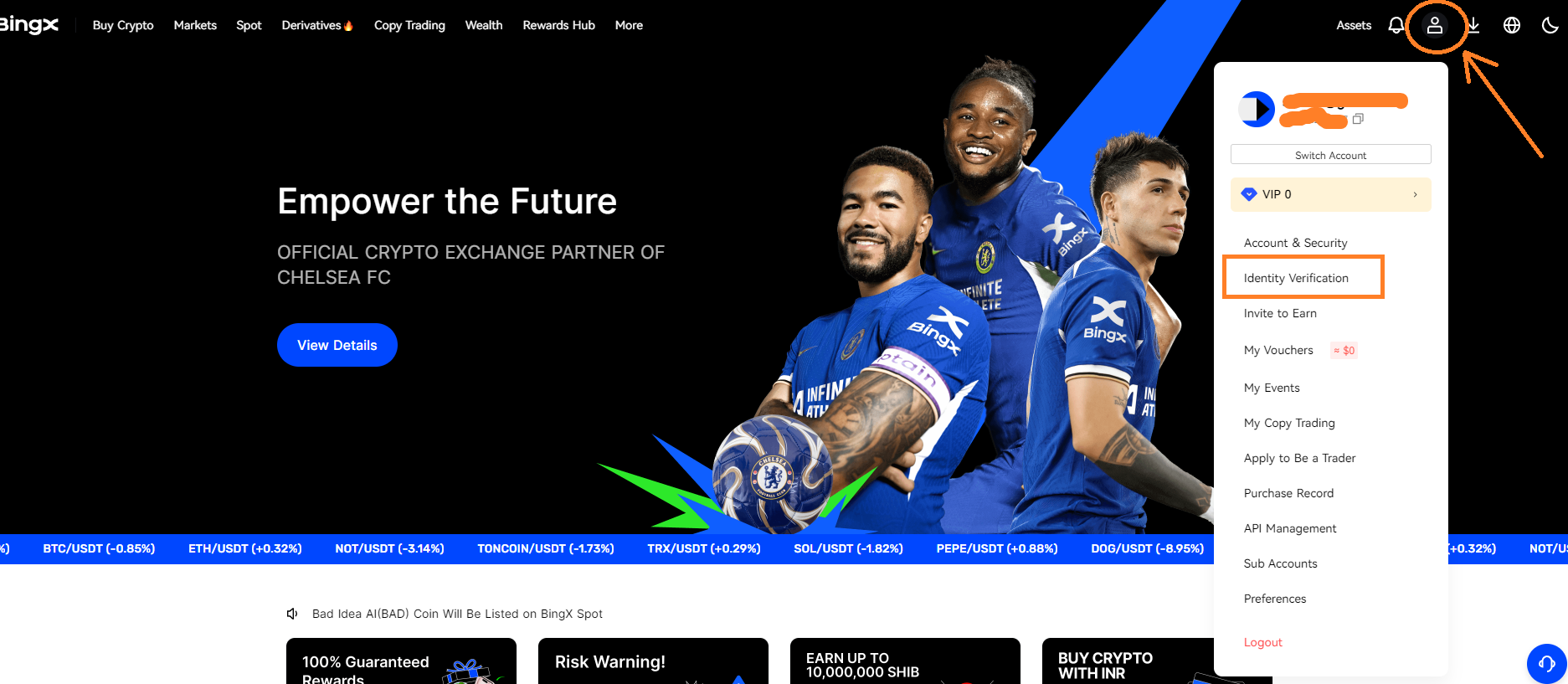 Note that this is only one example of how you can sell a part or all of your NOT stash. You could also transfer your NOT to an external wallet or another exchange and sell it from there. Alternatively, you could also go on a peer-to-peer trading platform that supports NOT and sell it there. If you are using BingX P2P trading, you may have to first verify your identity by following the steps we mentioned above.