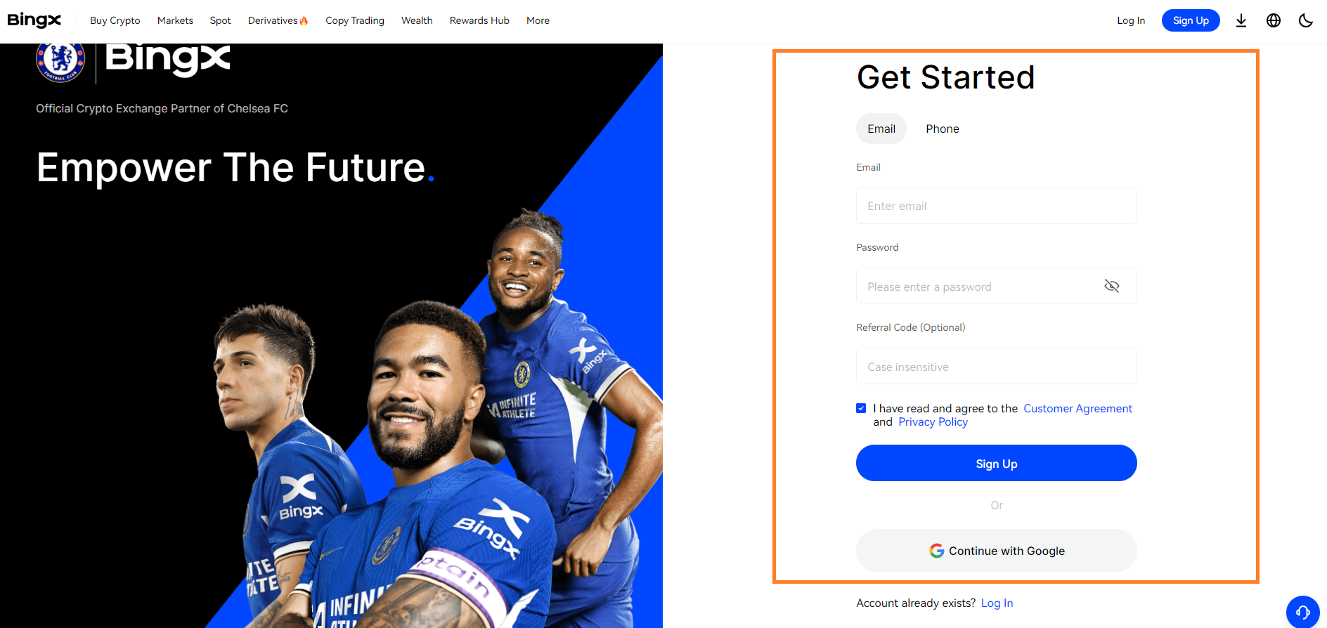 If you don’t already have an account on BingX, it’s time to create one. The process is simple. Visit the BingX website and find the sign-up button — it’s usually around the top-right corner.