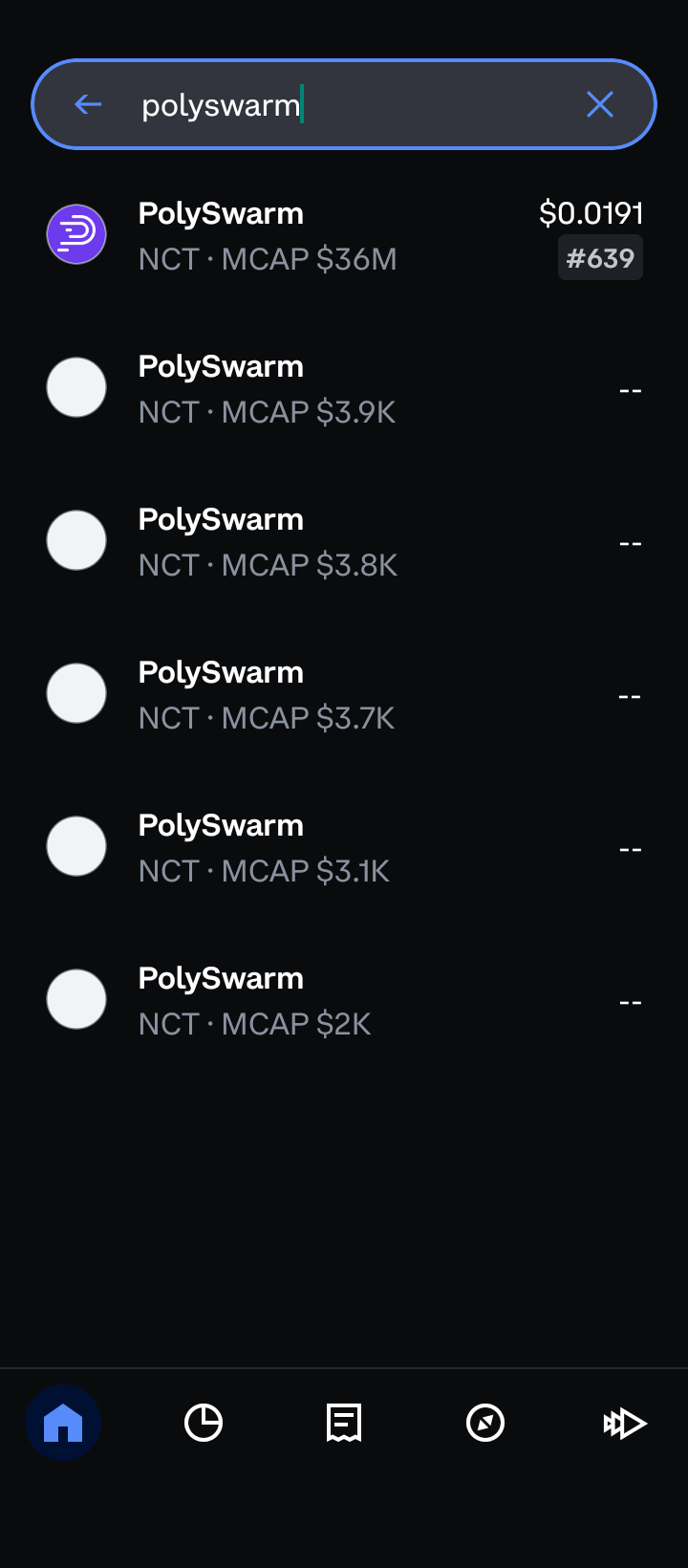 2. Search for Polyswarm: Look for Polyswarm (NCT) in the search bar.