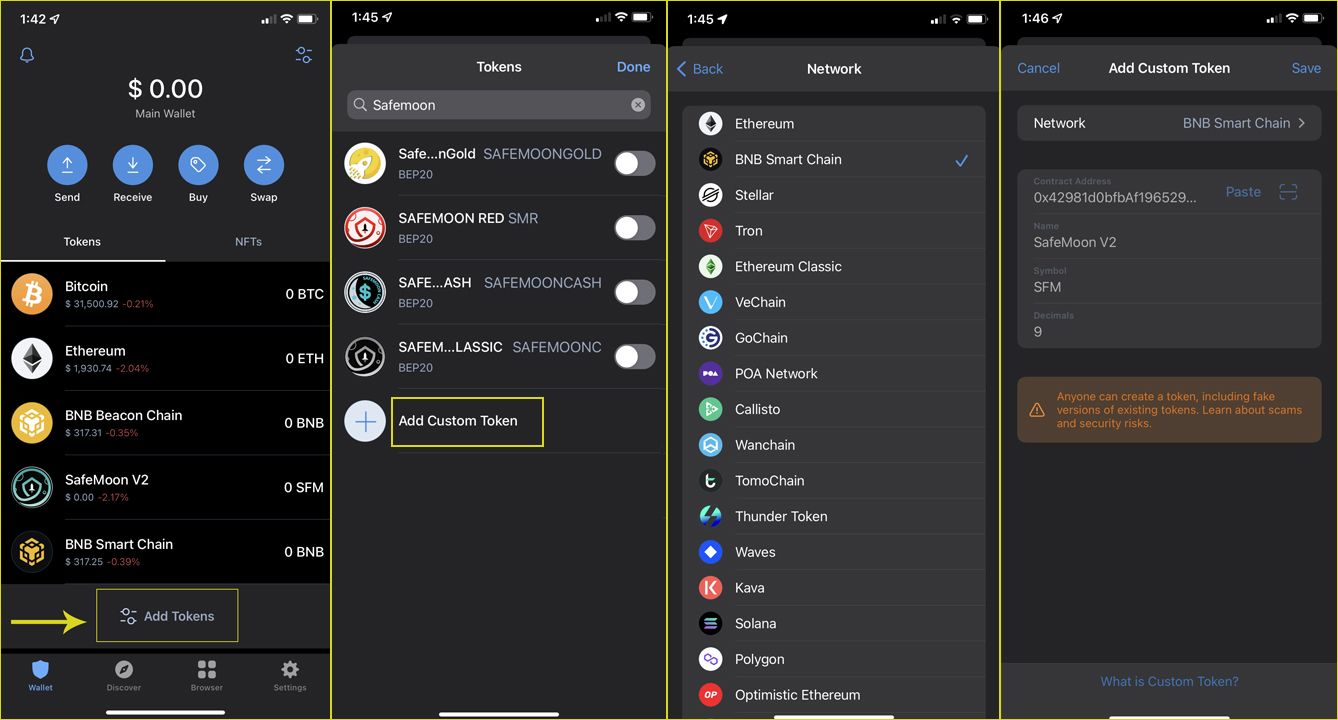 The same steps are needed to add any other token to Trust Wallet (Note that SafeMoon V2 can be searched for in Trust Wallet, while the older version must be input manually).