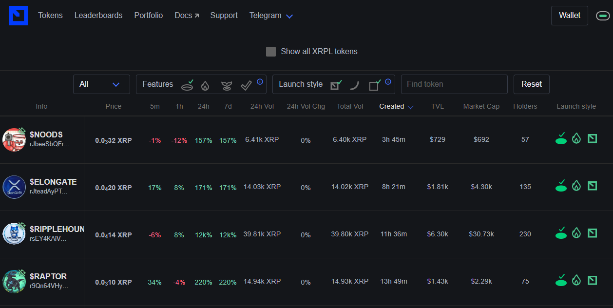 First Ledger is a trading platform on XRPL. It offers a streamlined user experience by allowing traders to create a wallet with an email or X account. It became popular with its Telegram integration, which allowed users to create wallets. However, this feature is currently unavailable due to a Telegram update.