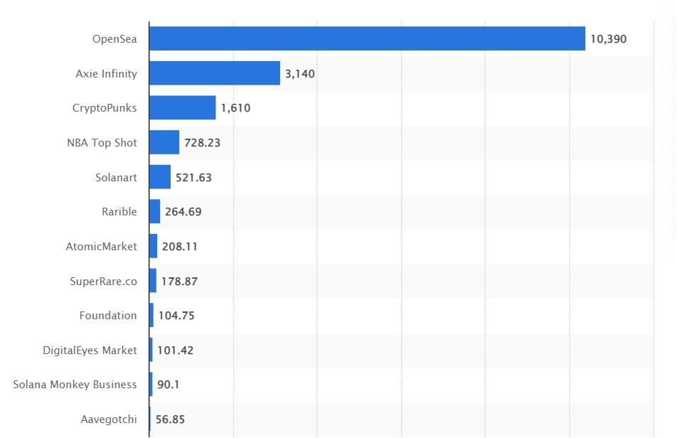 According to Statista, the most popular NFT marketplace, OpenSea, has had over $10 billion in NFT sales since its existence.