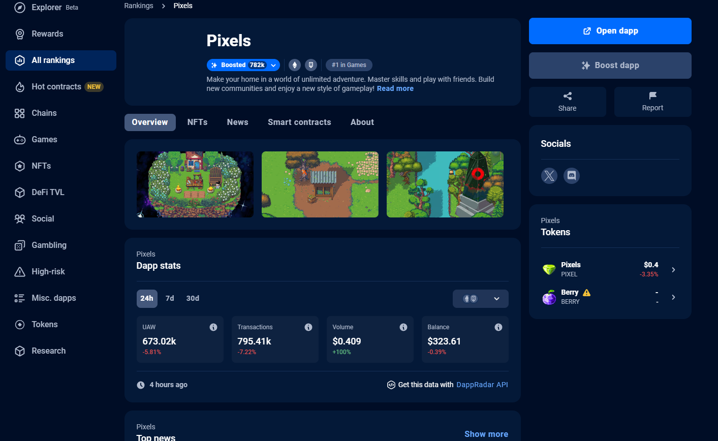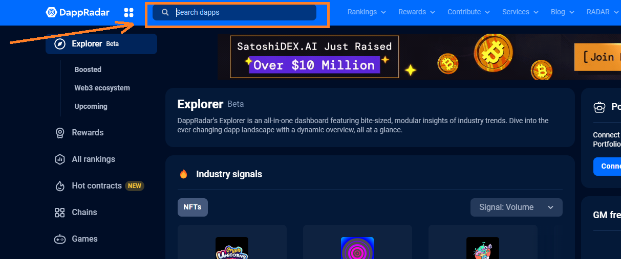 Explore DappRadar’s dashboard
