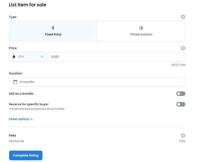 To benefit from your digital art, you have to list your NFT for sale and find the right buyers for the collection. This might be the trickiest part, as artists cannot control the market and might need to work on developing the right marketing strategy to sell their first NFT successfully. New artists will have to pay two fees on OpenSea.