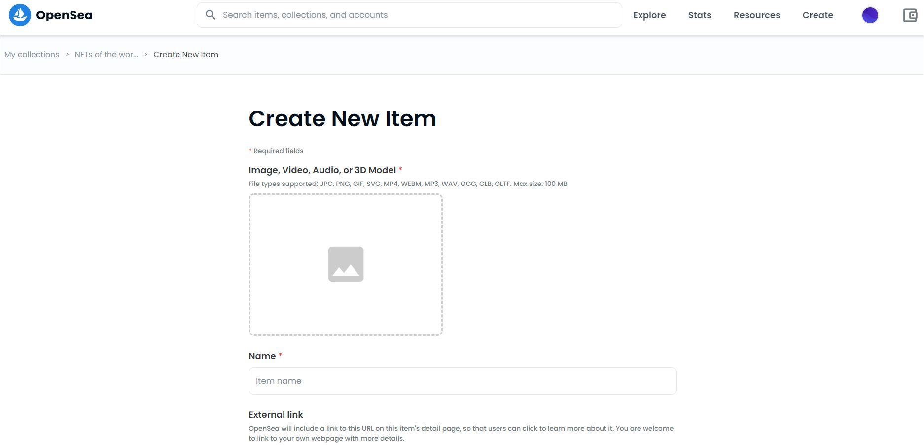 On the Create New Item page, you will need to specify all the details for your new NFT, including: