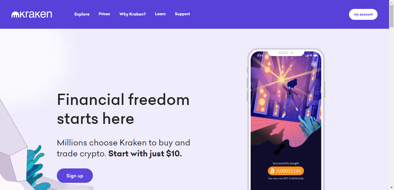 The step-by-step process below on how to trade cryptocurrency uses Kraken as an example. The crypto exchange charges low spot trading fees and supports a wide range of payment methods, such as debit cards, Apple or Google Pay, and bank transfers. Although Kraken is a suitable platform for all types of crypto trading, it doesn’t serve some countries or U.S. customers from certain states.