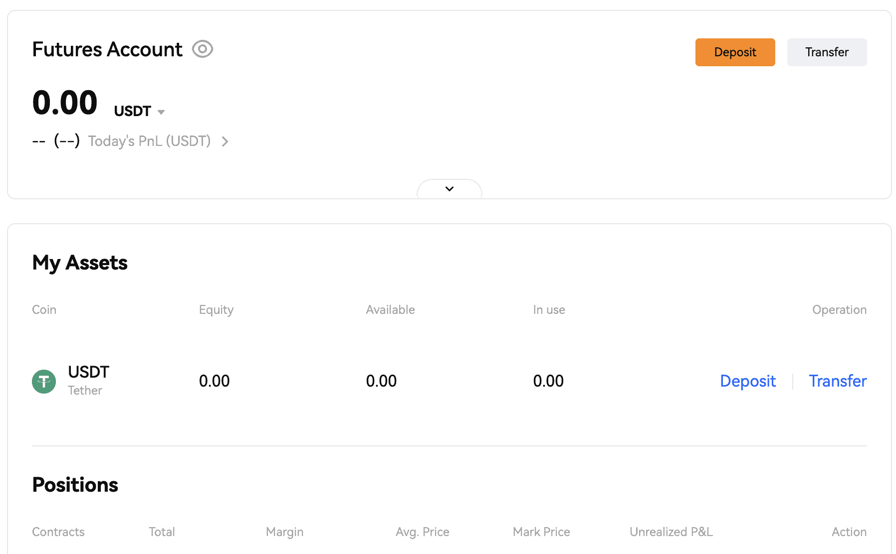 - You can manually deposit crypto from other addresses to the futures account. Or, you can move funds from the spot, earn, or funding wallet to your futures wallet in a single click.