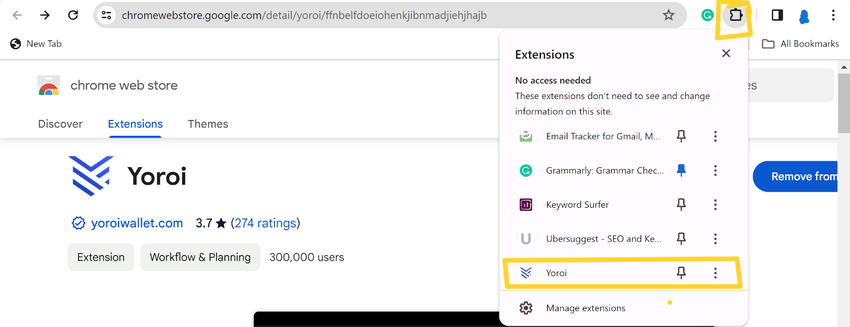 Once you download it, install it on your browser. Once installed, the Yoroi symbol will appear in the browser extension area;