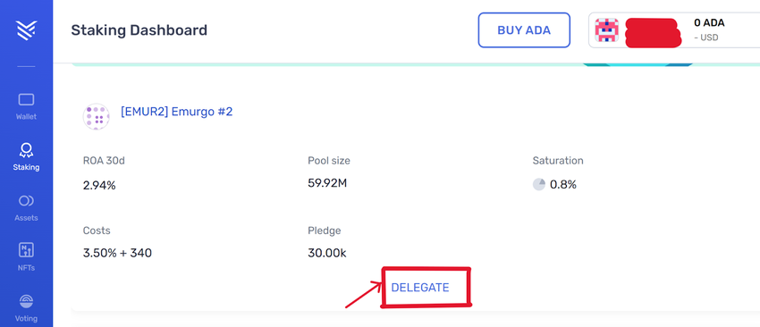 Once you identify a staking pool for delegation, click the Delegation button. Enter your spending password and confirm the process. You’re now set to stake and ready to roll.