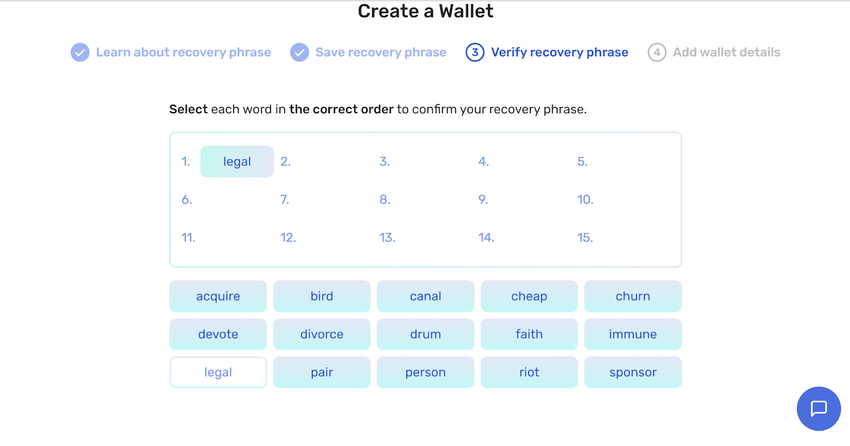 You can now verify the recovery phrase.